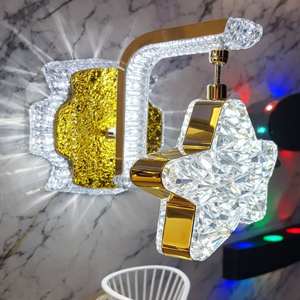 Illuminez vos espaces avec cette applique murale LED au design raffiné. Sa surface dorée texturée et ses éléments en cristal créent un jeu de lumière éclatant, apportant une touche luxueuse à vos murs. Parfaite pour un salon, une chambre ou un couloir, elle combine esthétique et fonctionnalité. Facile à installer, elle s’intègre dans les intérieurs modernes ou classiques et met en valeur vos espaces avec élégance.