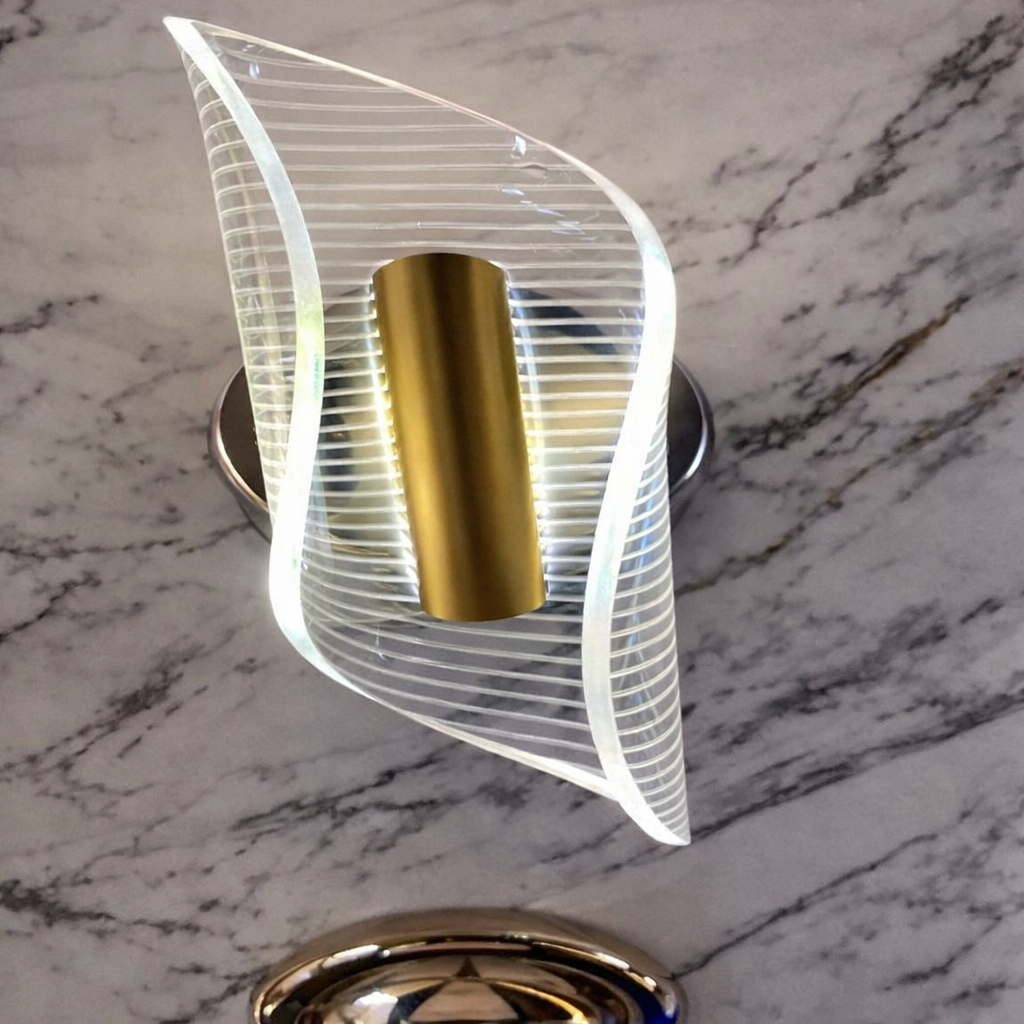 Apportez une touche contemporaine et raffinée à vos espaces grâce à cette applique murale LED. Son corps cylindrique doré diffuse une lumière chaleureuse, tandis que son cadre sculptural transparent aux lignes horizontales crée un effet artistique unique. Parfaite pour un salon, une chambre ou un couloir, elle allie fonctionnalité et décoration. Facile à installer, elle s’intègre harmonieusement dans les intérieurs modernes et met en valeur vos murs avec subtilité.