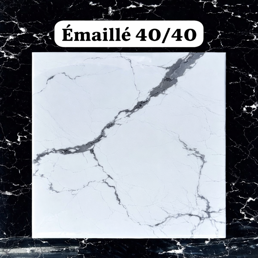 Ces carreaux de sol vitrifiés 40×40 cm apportent une touche raffinée à vos espaces grâce à leur effet marbre blanc aux veinures grises. Leur format plus compact est idéal pour les pièces de moyenne superficie comme les cuisines, couloirs, chambres ou bureaux. La finition vitrifiée offre une surface brillante, résistante aux taches et simple à nettoyer, ce qui en fait une solution pratique pour un usage quotidien. Adaptés aux projets neufs comme aux rénovations, ces carreaux permettent de créer un sol moderne et durable, avec un excellent rapport qualité-prix.
