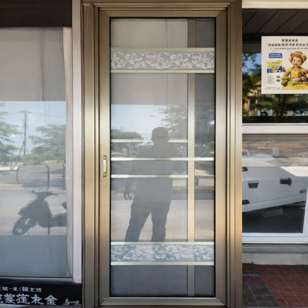 Porte toilette haut de gamme en profilés aluminium doré avec verre dépoli satiné, 2.2m x 70cm. Verre trempé sécurisé, cadre robuste anti-corrosion. Laisse passer lumière pour intimité parfaite. Style asiatique élégant pour WC/salle de bain Lomé. Prête installation.